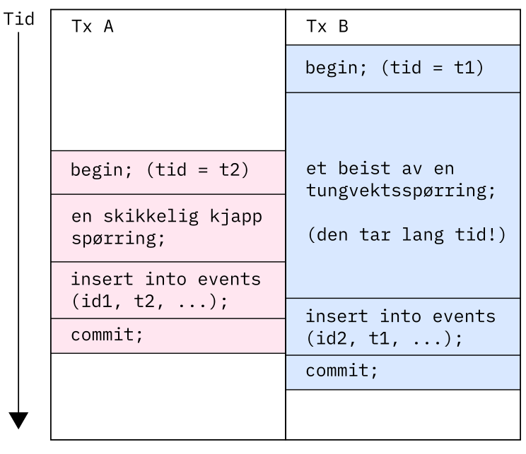 transaksjon starte før en annen, men sette inn rader i events-tabellen