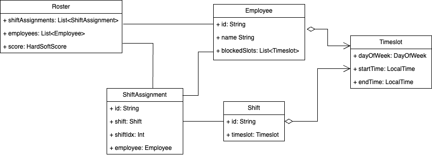 Timefoldsin solver (mer om det litt senere) - Og den representerer løsningen som