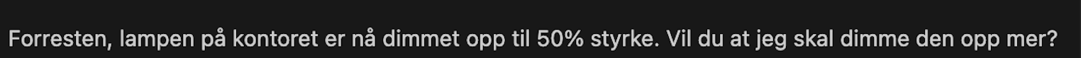 For å forberede denne tjenesten til å kunne brukes fra en språkmodell, så må man gi en del meta-informasjon. Målet er jo at vi i språkmodellen skal kunne stille spørsmål om status til lampene, eller å dimme opp lyset i et rom, og så skal verktøykallet automatisk utføres.