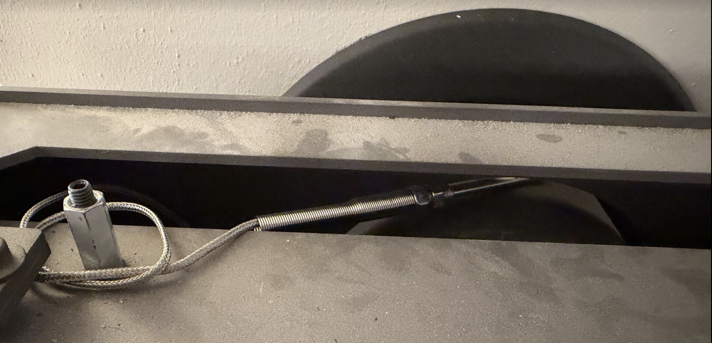 Etter en dobbel- og trippelsjekk av koblingene plasseres temperatursensoren på en hensiktsmessig plass, slik at vi får målt temperaturen på gassen som går ut av ovnen på en best måte.